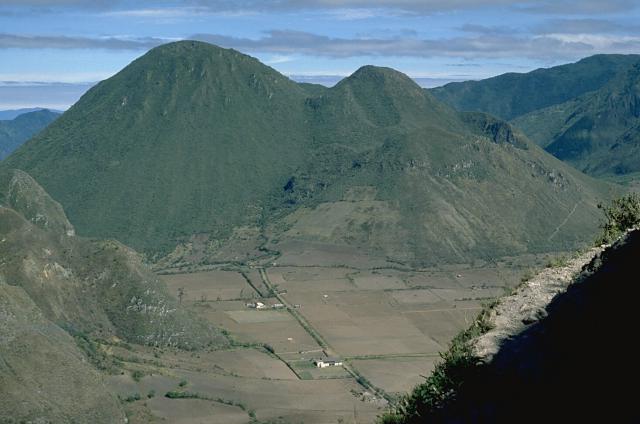 Pululagua is a large rhyolitic-dacitic caldera formed approximately 2450 years ago during a series of powerful Plinian eruptions. These explosive events emptied the volcano’s magma chamber, causing the summit to collapse and create the broad caldera seen today, roughly 19 square kilometers in area. The caldera is irregularly shaped and breached to the west by the Río Blanco valley. Surrounding the caldera are several lava domes, including Pondoña, El Chivo, and Pan de Azúcar, which formed in the centuries following the collapse. The highest point on the caldera rim is Sincholagua hill, rising to 3356 meters. The volcano’s eruptions had significant impacts on ancient human settlements, notably causing the abandonment of the Cotocollao culture in the region. Today, Pululagua is dormant with no recent eruptive activity, but it remains geologically significant as a geobotanical reserve due to its unique volcanic formations and rich biodiversity.